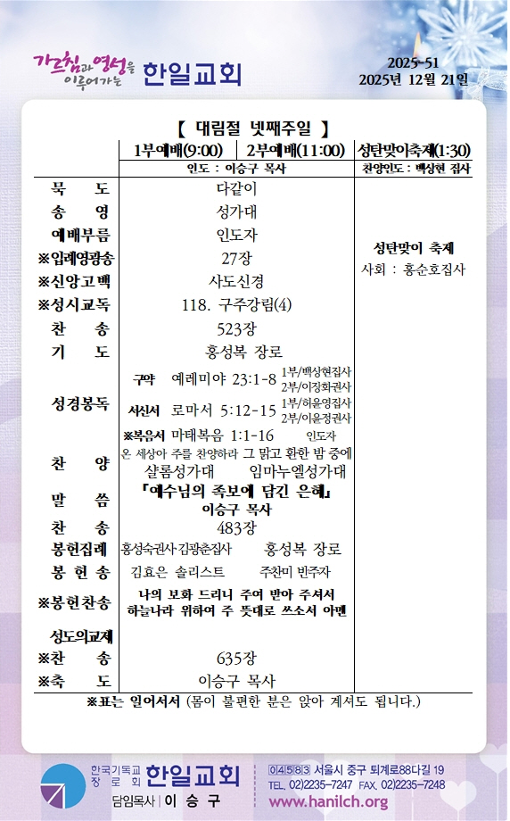 ¿¹¹è/¾Ë¸² (2025³â 12¿ù 21ÀÏ ´ë¸²Àý ¼Â°ÁÖÀÏ)