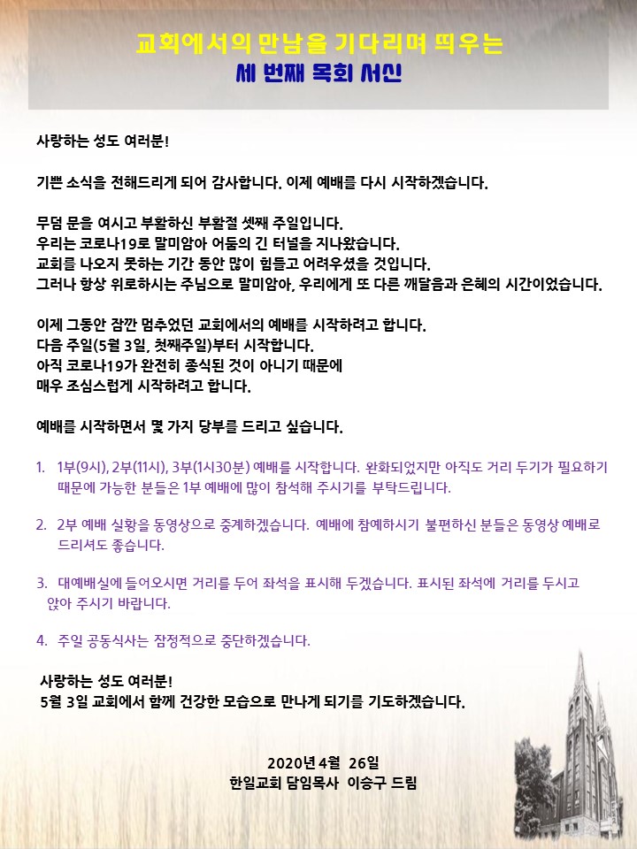 ÇÑÀϱ³È¸ °¡Á·¿¡°Ô µå¸®´Â ¼¼¹øÂ° ¸ñȸ¼½Å