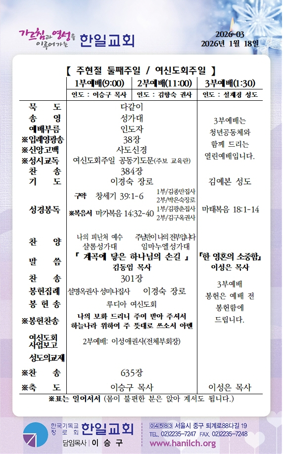 ¿¹¹è/¾Ë¸² (2026³â 1¿ù 18ÀÏ ÁÖÇöÀý µÑ°ÁÖÀÏ)
