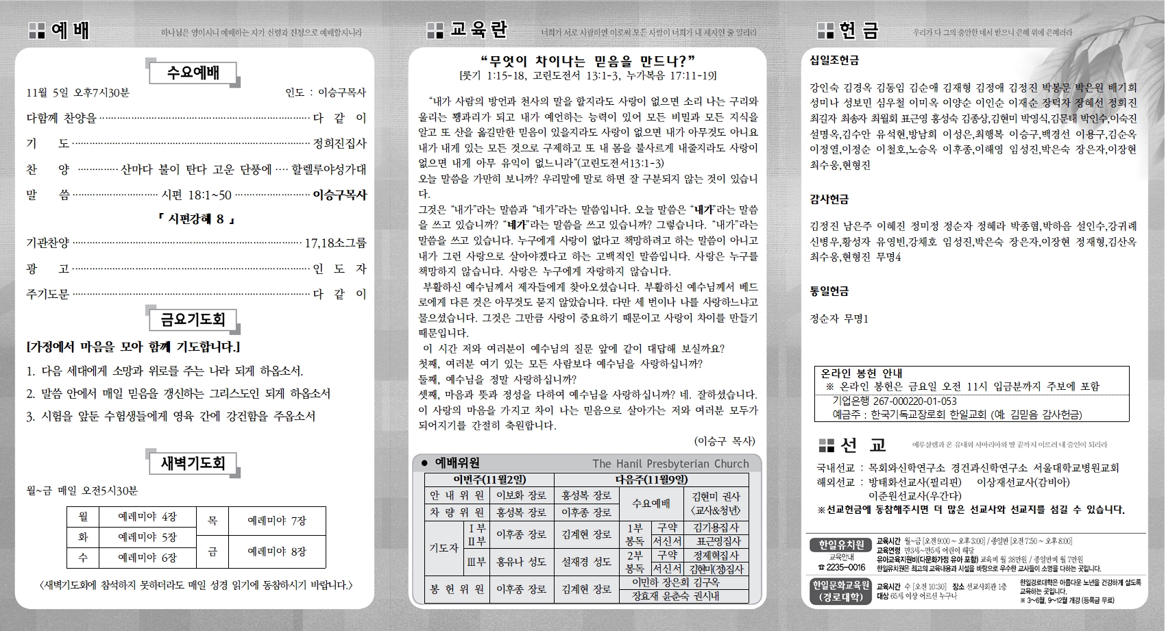 04583 ¼¿ï½Ã Áß±¸ Åð°è·Î 88 ´Ù±æ 19, TEL:(»ç¹«½Ç)2235-7247,2234-7246, Fax:2235-7248 The Hanil Presbyterian Church Toegye-ro 88da-gil 19, Jung-gu, Seoul, Korea Copyright (c) 2021 hanilch.org. All rights reserved. Provided by S.L.I.M.